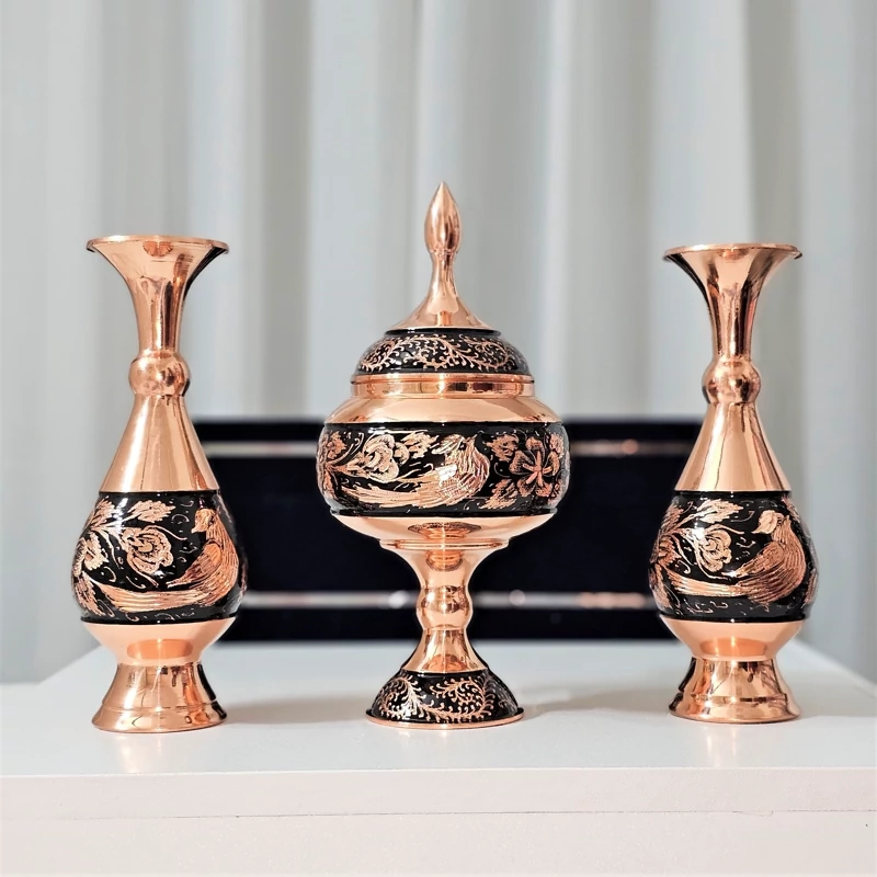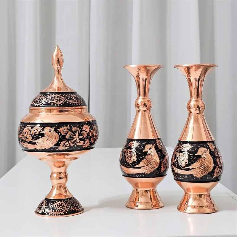 قیمت و خرید ست گلدان 20 و شکلات خوری 23 مس و پرداز به همراه جعبه فانتزی