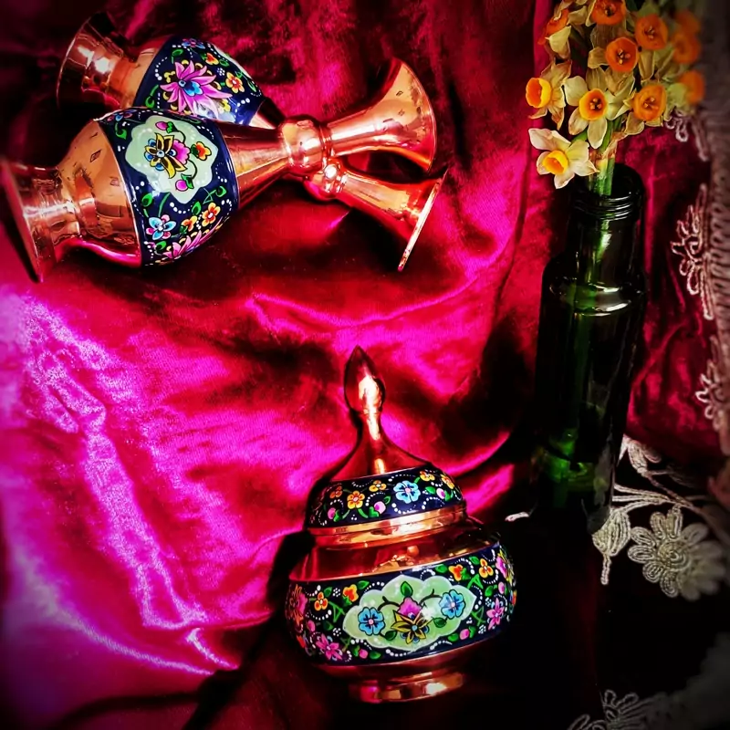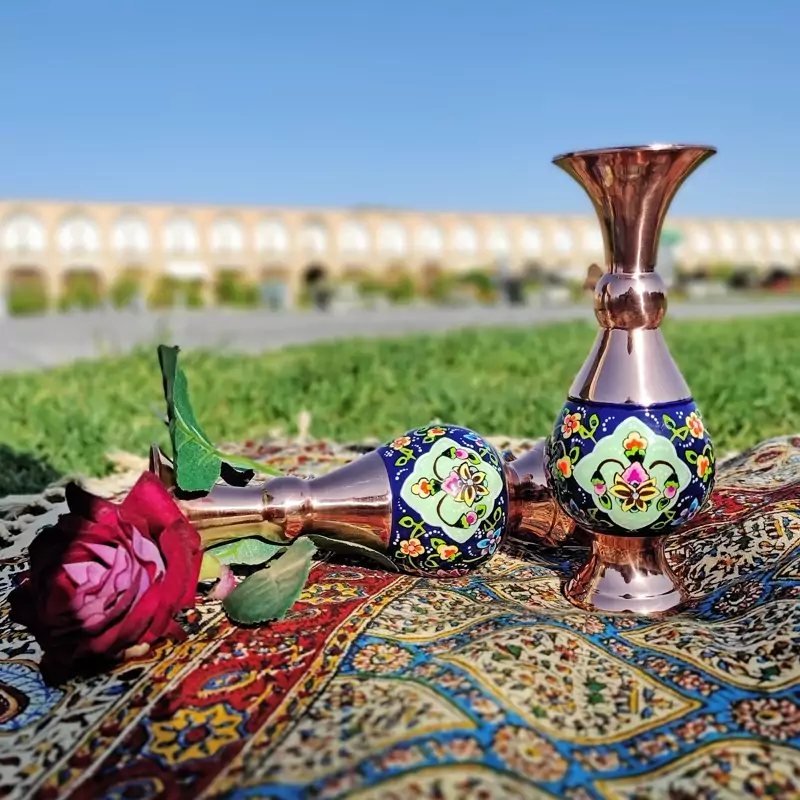 نقاشی به سبک پرداز که اصالت 1500 ساله دارد به شیوه ای جدید بر روی زیر ساخت های مسی بکار گرفته می شود. محصولات مس و پرداز به دلیل قیمت مناسب، تنوع فراوان و زیبایی فوق العاده طرفداران بسیاری را به خود جذب کرده است. این ست گلدان زیبا یکی از محصولات ارزان قیمت مس و پرداز است که می تواند روی میز مبل، روی کانتر، درون ویترین و بوفه و هرجای دیگری قرار بگیرد.