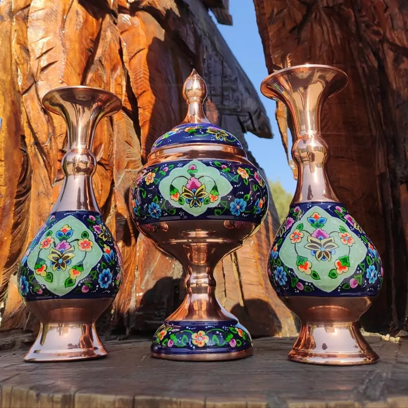 قیمت و خرید ست گلدان 20 و شکلات خوری 23 پایه دار مس و پرداز