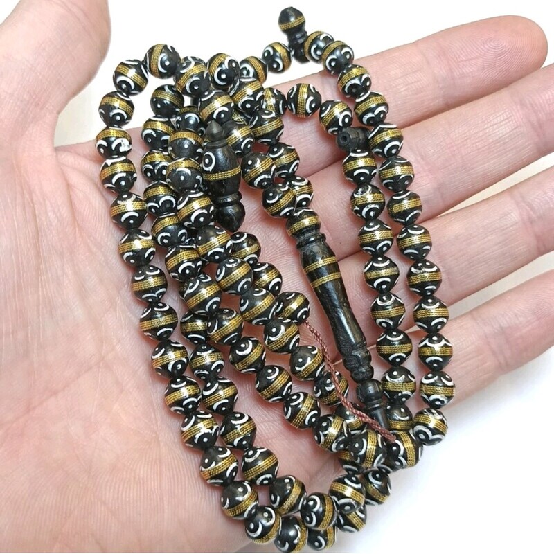 قیمت و خرید تسبیح یسر مشکی طلایی 100دانه سایز8