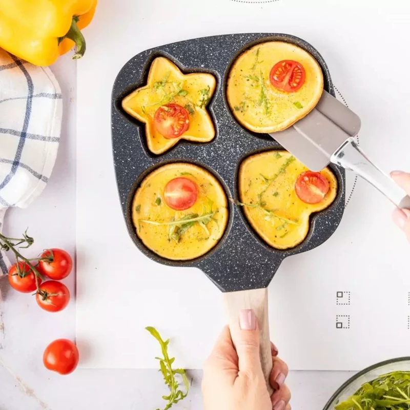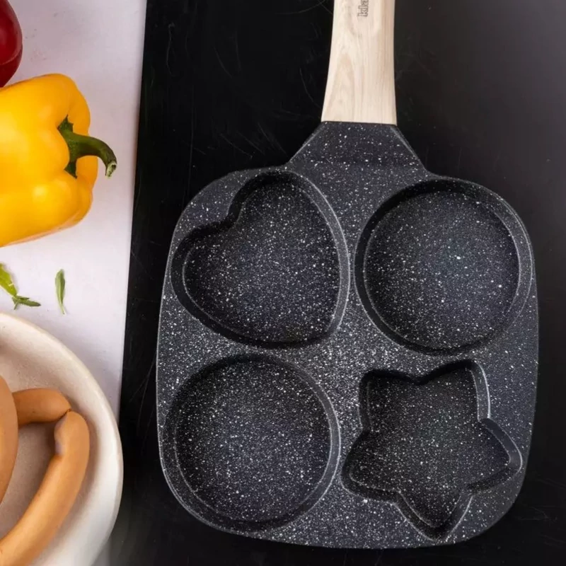 تابه پنکیک طرح قلب و ستاره 4 قسمتی محصولی جدید و کاربردی از سری لوازم آشپزی و آشپزخانه است که با طراحی 4 خانهای، از جنس گرانیت محکم و بادوام ساخته شده است.
