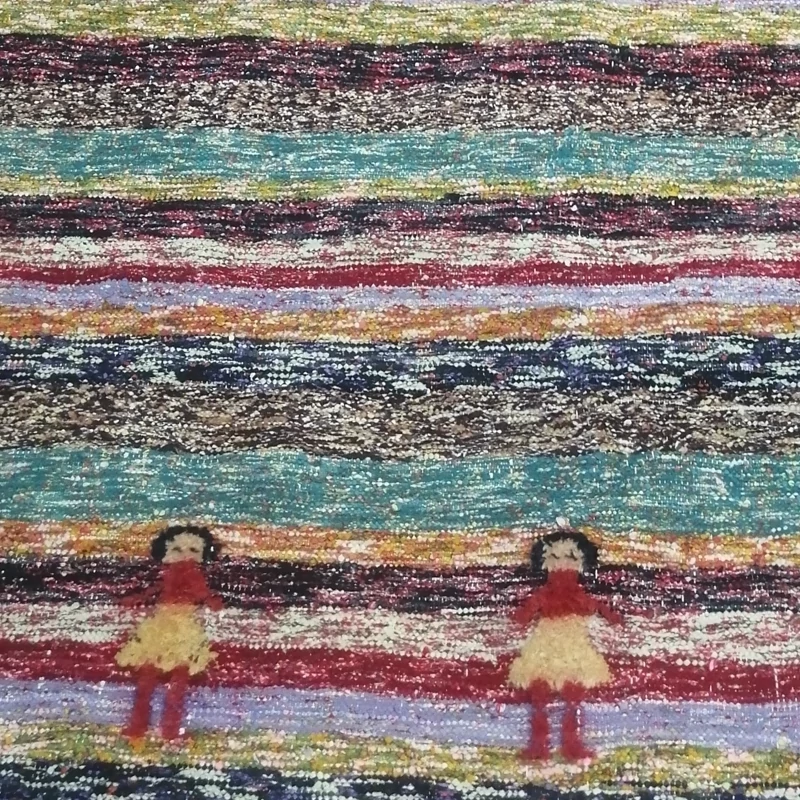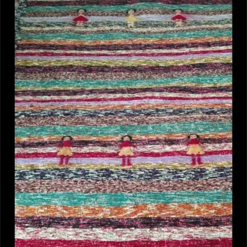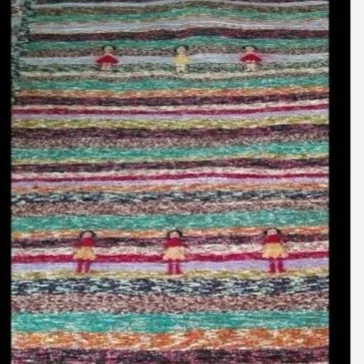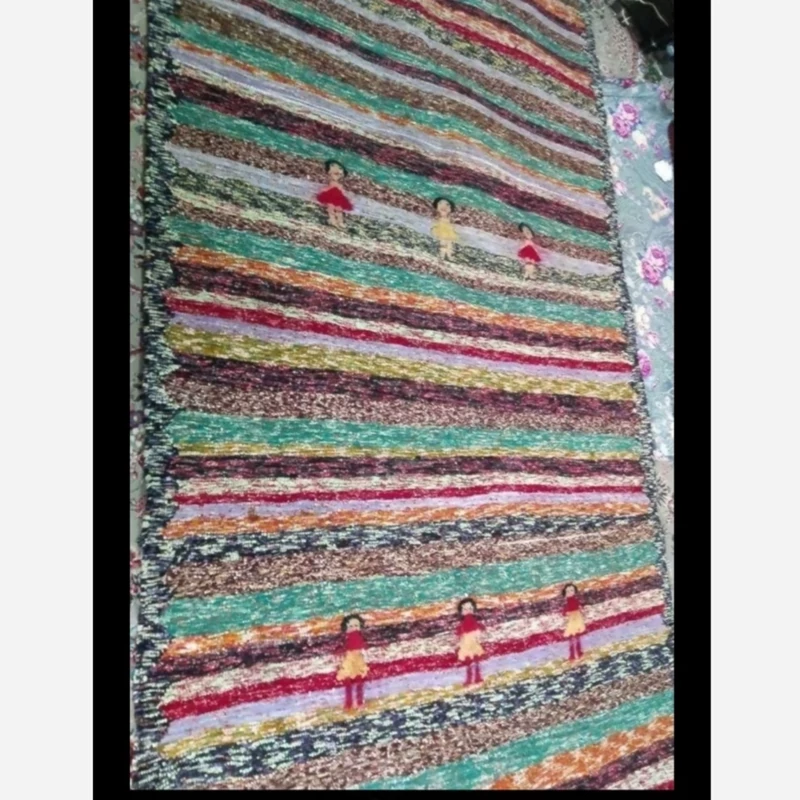 یک تخته گلیم دستباف سایز بزرگ الیاف نخ و پارچه کاملا نو و فوقالعاده زیبا و چشم نواز به ابعاد 3/20 در 1/70